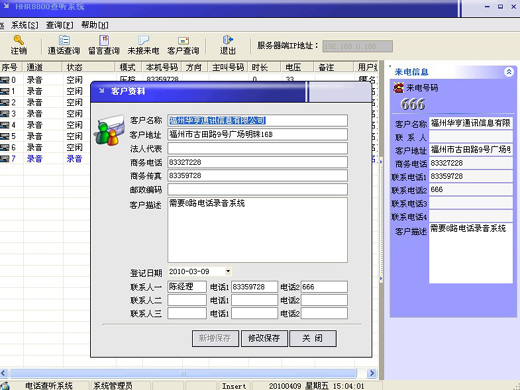 ◆ 极其强大的实时监听功能,网内客户端都可以通过授权监听任意通道的录音情况;